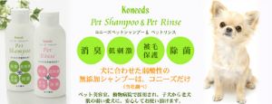コニーズペットシャンプーは徹底的に成分にこだわり、ワンちゃんの肌や被毛にやさしい厳選した100%天然植物由来の成分でできています。アレルギー、アトピー、皮膚病の原因と考えられている石油由来の合成界面活性剤、防腐剤、合成着色料、合成香料の添加物は一切使用しておりません。